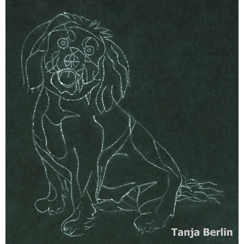 First I transferred the design onto the fabric using the prick and pounce method and painted over the pounce lines with white acrylic paint.